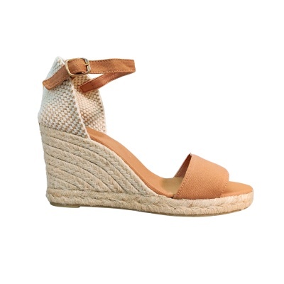 Sandália BALA em algodão com fecho de fivela e palmilha acolchoada. De plataforma combinada em jute.