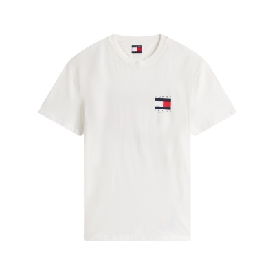 Adicione um toque especial ao seu guarda-roupa casual com esta camiseta de algodão puro, que apresenta um logotipo de bandeira grande nas costas.